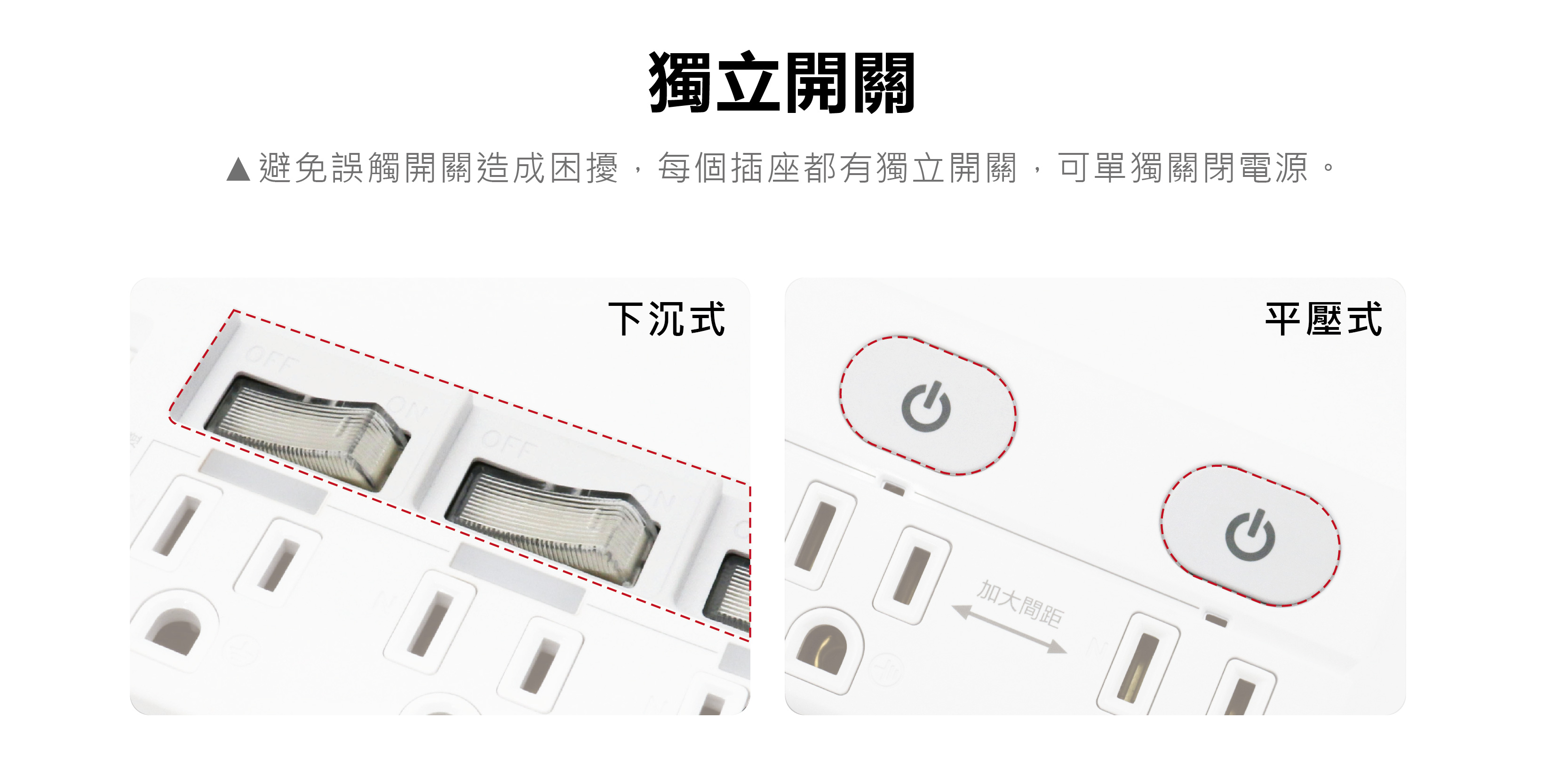 ◆下沉式開關,防止誤觸