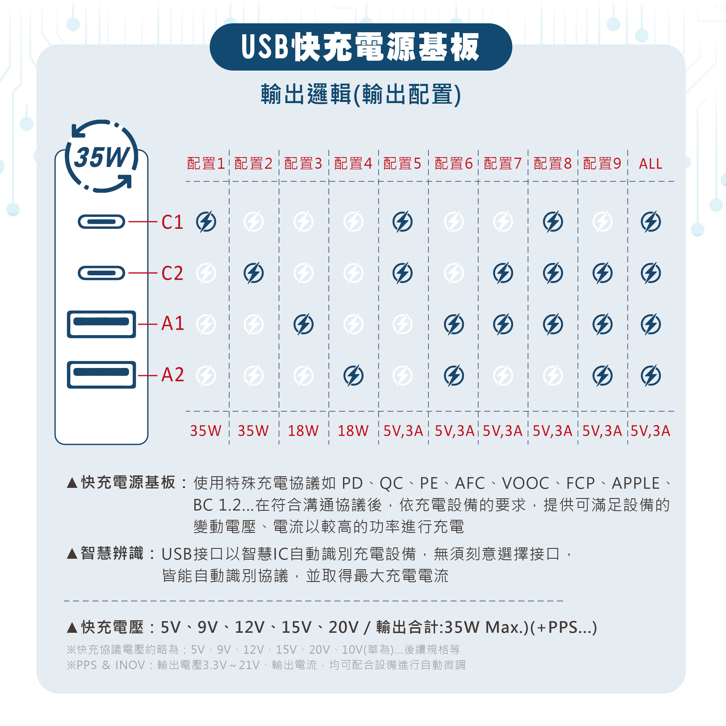 ◆內置Smart charger晶片,具智慧辨識功能,單孔最大輸出電流為2.4A
