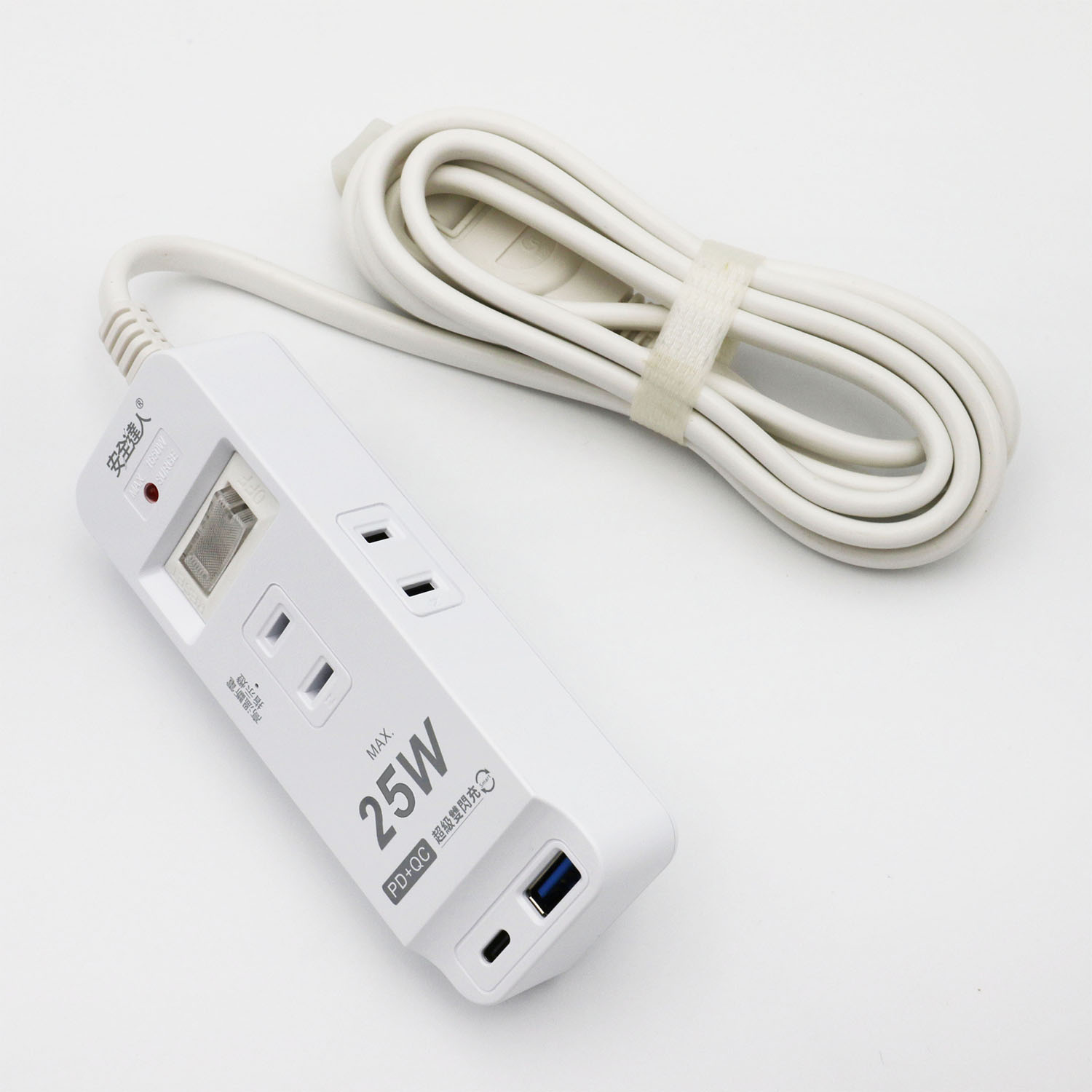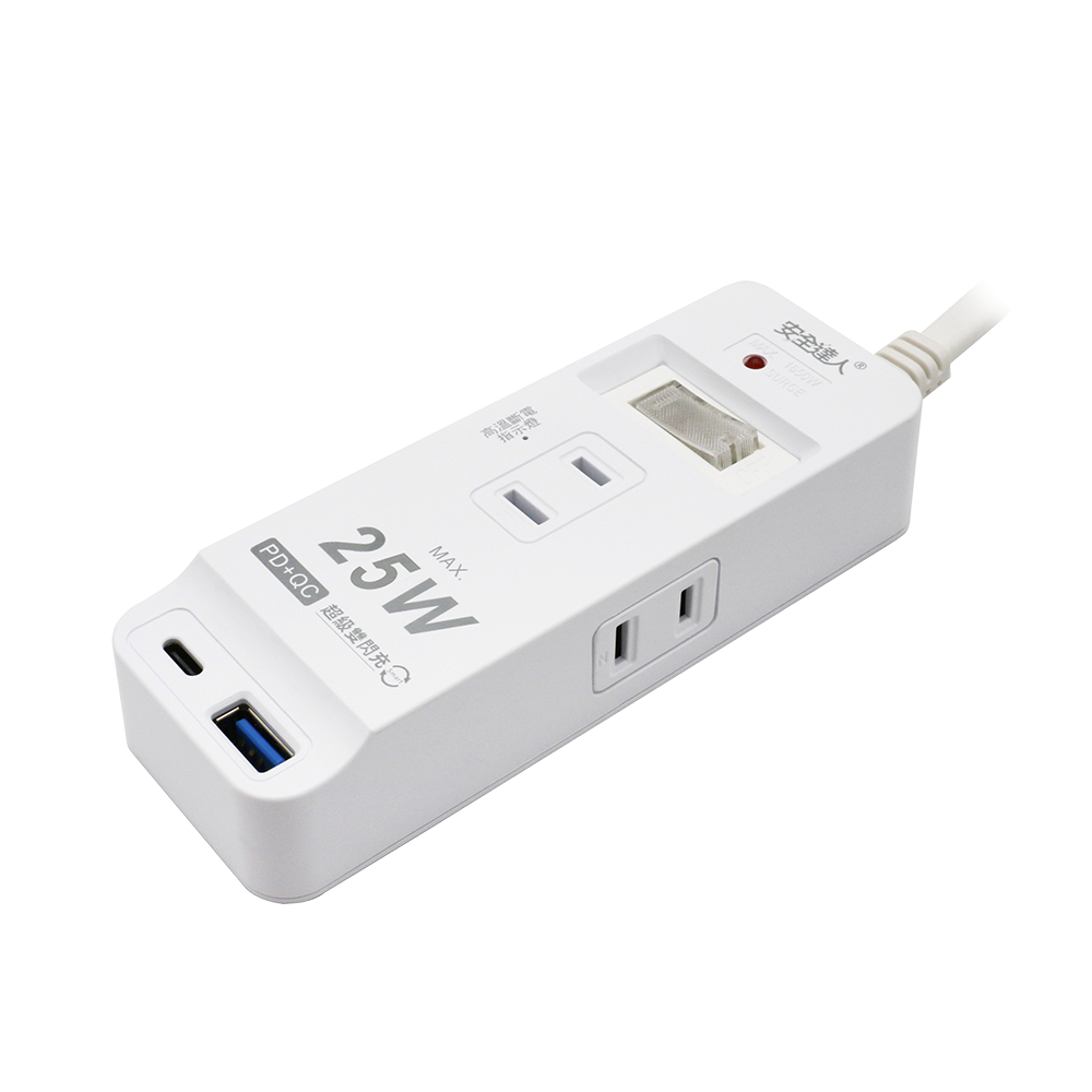 ◆產品規格:1+1+1口,2孔,PD25W(Type-C)+QC3.0(Type-A)